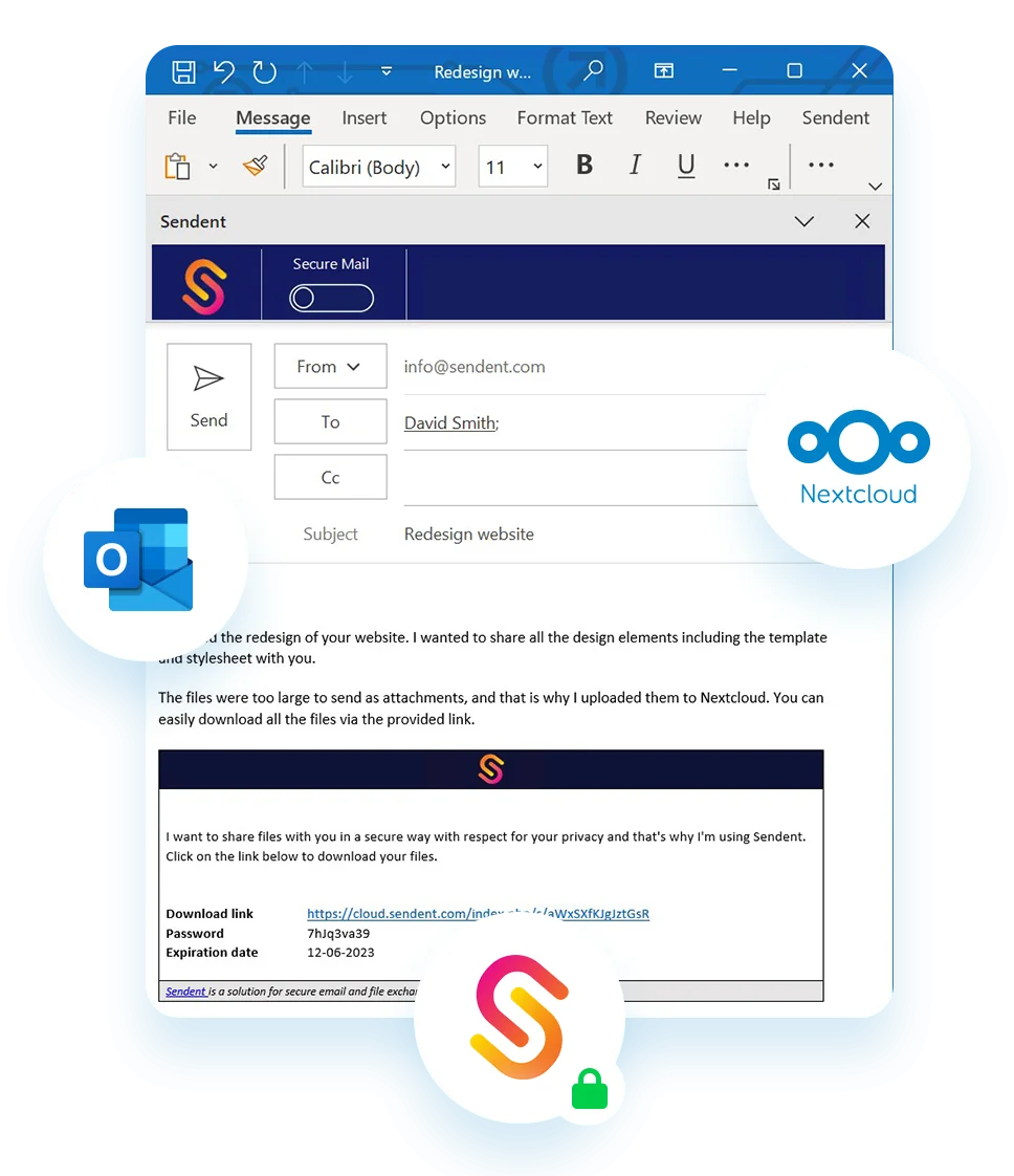 Bien qu'il s'agisse de diminuer fortement la dépendance aux solutions Microsoft, Nextcloud Enterprise est conçu pour s’intégrer parfaitement dans les environnements Microsoft, avec des intégrations disponibles pour le stockage de fichiers, les répertoires d’utilisateurs, Outlook, Sharepoint, Windows Desktop, le serveur en ligne MS Office et Teams.